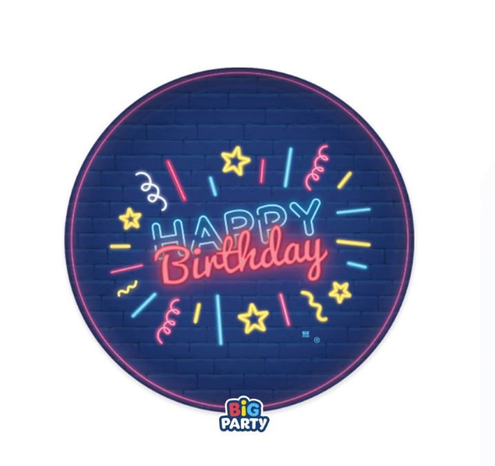 Šķīvji Happy Birthday Neon d18cm 1/8gab papīra
